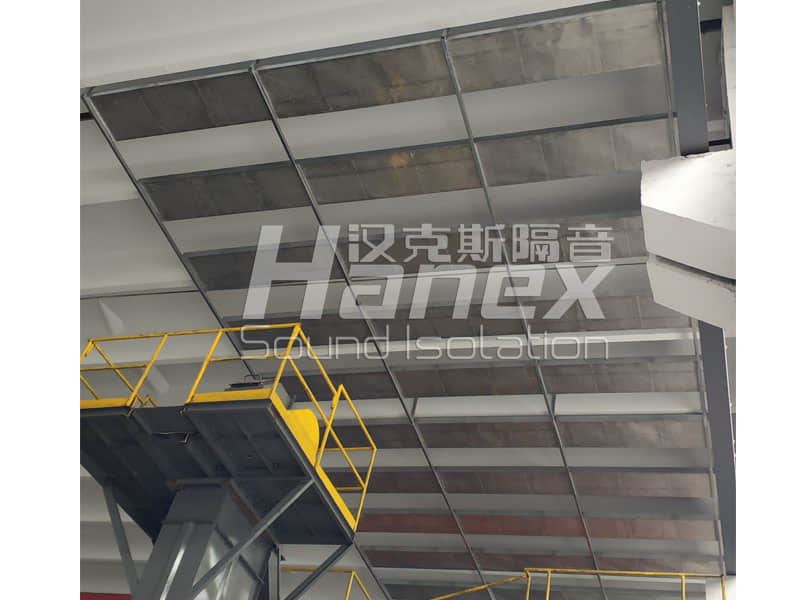 1、经杭州汉克斯隔音技术人员现场踏勘发现,破碎机生产线工作运行时,其产生的噪声一部分通过屋面绕射至居民区。因此,在生产车间内的破碎机正上方区域设计安装吸音吊顶。