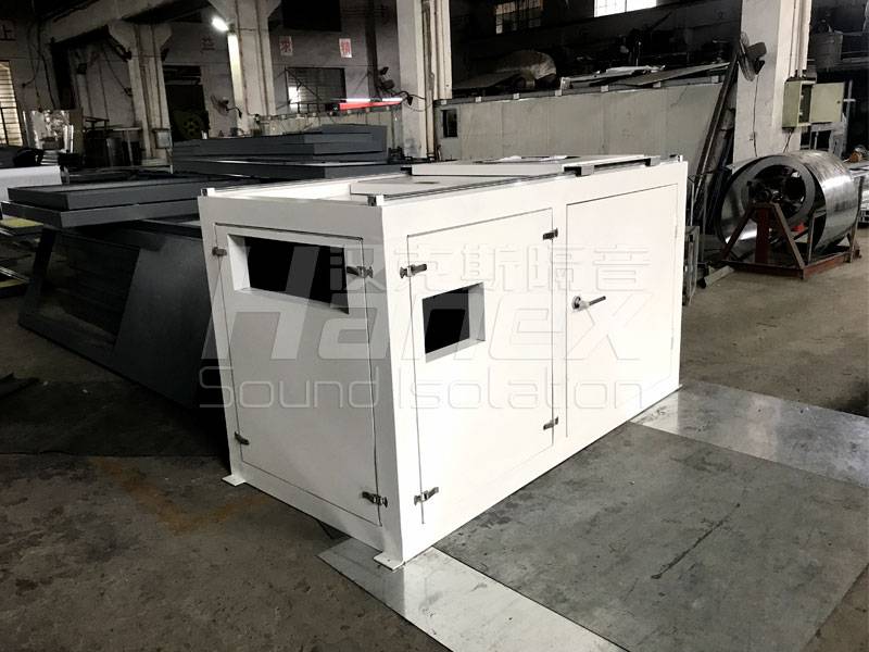 4、 隔音罩墙板可拆卸设计:隔音罩使用100*100的不锈钢方钢搭建框架,框架内部嵌隔音板,板与框架之间采用搭扣固定,板快在四个角各安装一个不锈钢搭扣,与框架链接。在松开4枚搭扣时即可取下该板块。使整个隔音房可随时拆卸。