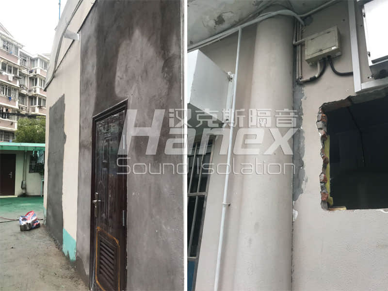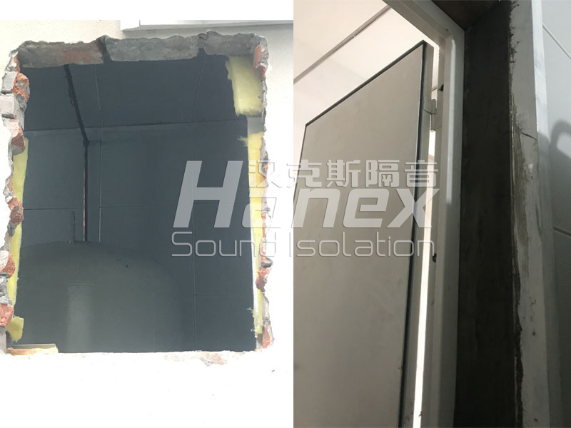制氧设备间:原玻璃窗内层增加一扇隔声窗,原制氧设备间门更换为隔音门,原玻璃窗上开洞安装1台排风扇配排风消声器,门上开洞安装进风消声百叶。