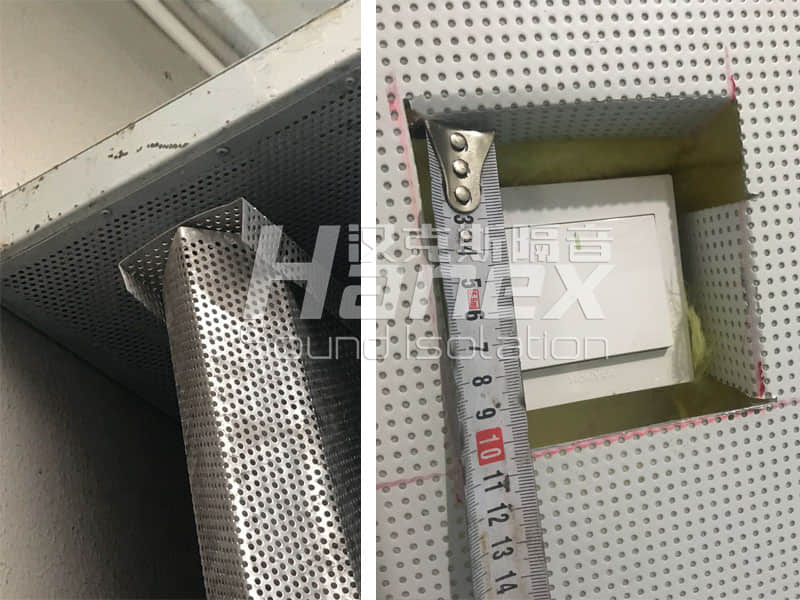 d) 屋顶排风消声室:对屋顶排风消声室进行垂直、水平左右高差以及消声室屋顶的坡度是否达到设计要求进行检查,还检查了排风消声室消声百叶安装,安装后屋顶排风消声室对屋面的防水处理等。消声百叶出厂试验符合设计及规范要求。各分项允许偏差项目均符合规范要求。质量合格;