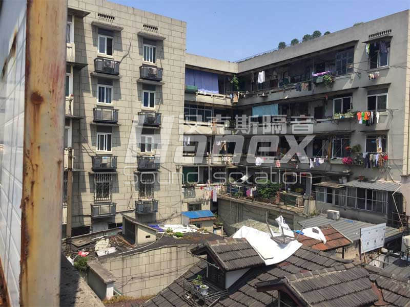 汉庭酒店(杭州西湖仁和路店)北侧客房楼屋面安装五组VRV空调主机,空调机主同时运行时噪声值可达到75~80分贝。在设备的北面是居民住宅楼,设备运行对该区域居民声环境产生一定的影响,同时对相邻的客房楼产生噪声污染。