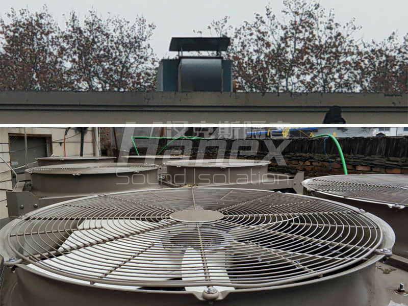 根据技术人员现场勘测以及我公司结合专业的声学计算设计,我公司技术人员发现空调室外机工作运行时所产生的噪声往外扩散,影响其南侧居民区的生活环境。因此,为进一步控制空调室外机组噪声的影响,我公司技术人员结合以往同类项目案例经验,采用吸隔声屏障对空调室外机组东北侧进行噪声控制措施处理,控制其工作产生的噪声往居民区扩散。