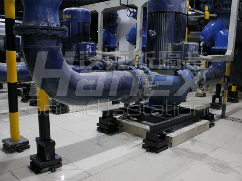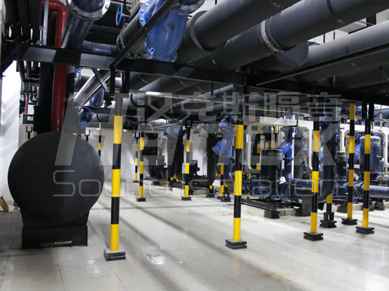 绍兴人民医院地下水泵房内的冷凝机组噪声过大,影响周边医院区,寻求冷凝机组降噪处理,佰利乐针对该项目进行了冷凝机组减震、水泵减震、管道弹性支撑减震等方式解决振动噪声问题。