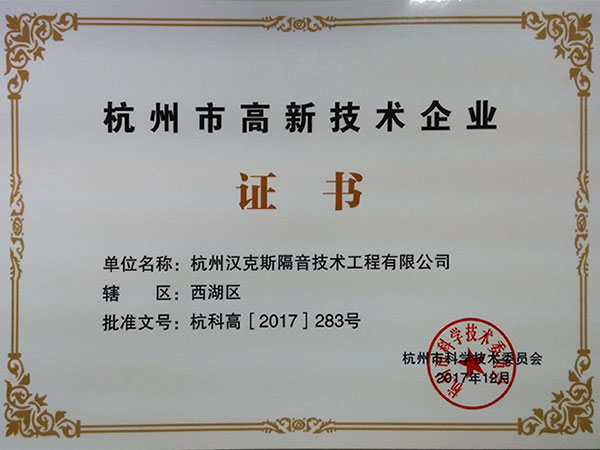 杭州市高新技术企业证书